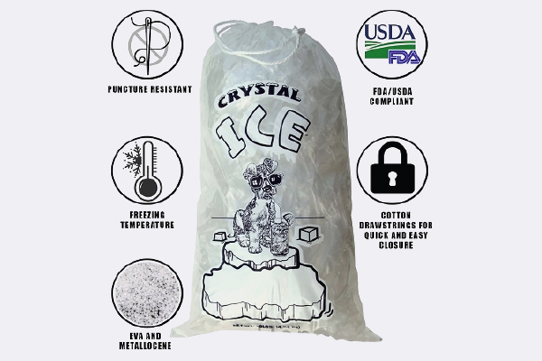 Strong FDA approved with heavy duty plastic drawstring ice bags. They contain eva & metallocene additives for more strength, cold storage, and puncture resistance. 8, 10 a nd 20l bice …